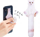 アイドル猫「ホイちゃん」コラボのスマホアクセサリー、スマホ背面に貼って落下防止! スタンドにも!